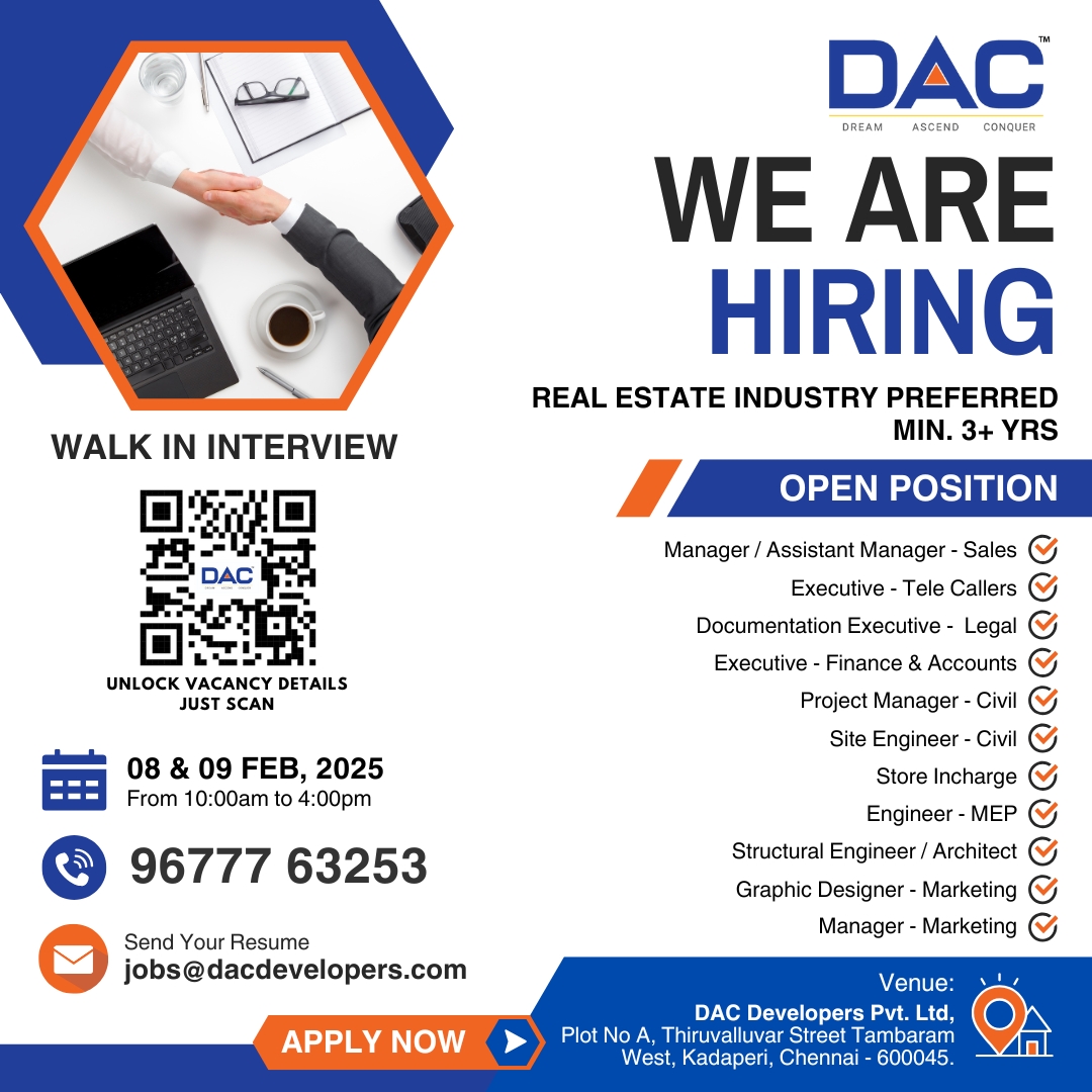 When we were looking for a property in Chennai, we came across DAC. We were really impressed by their warm hospitality and the clear way they shared their plans. The DAC team kept us updated closely on how the project was progressing.