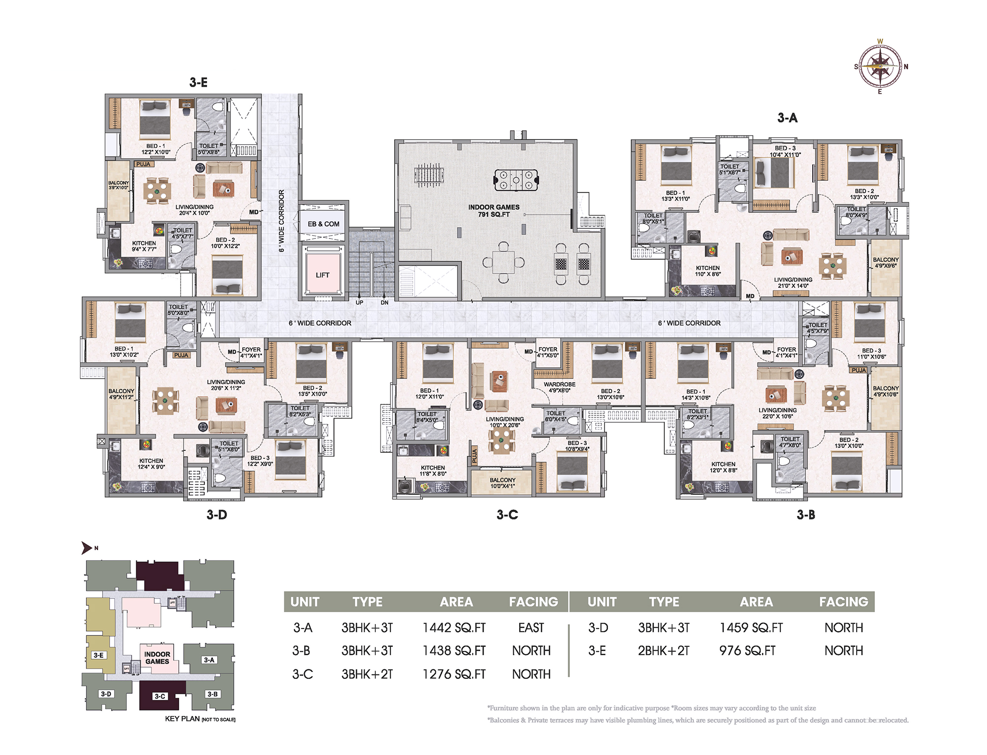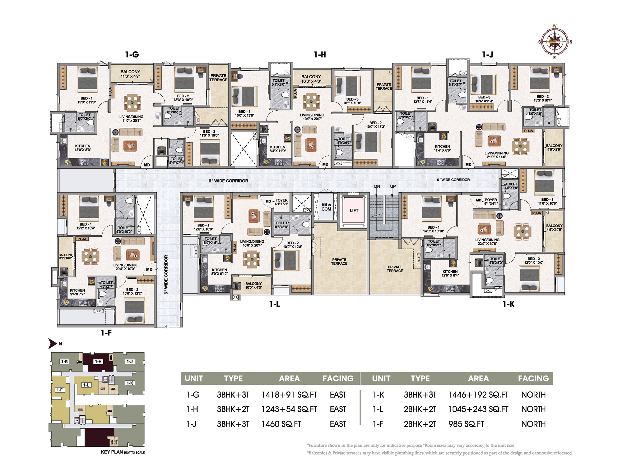 Explore thoughtfully designed floor plans with spacious living areas and well-organized bedrooms, ensuring comfort and functionality.